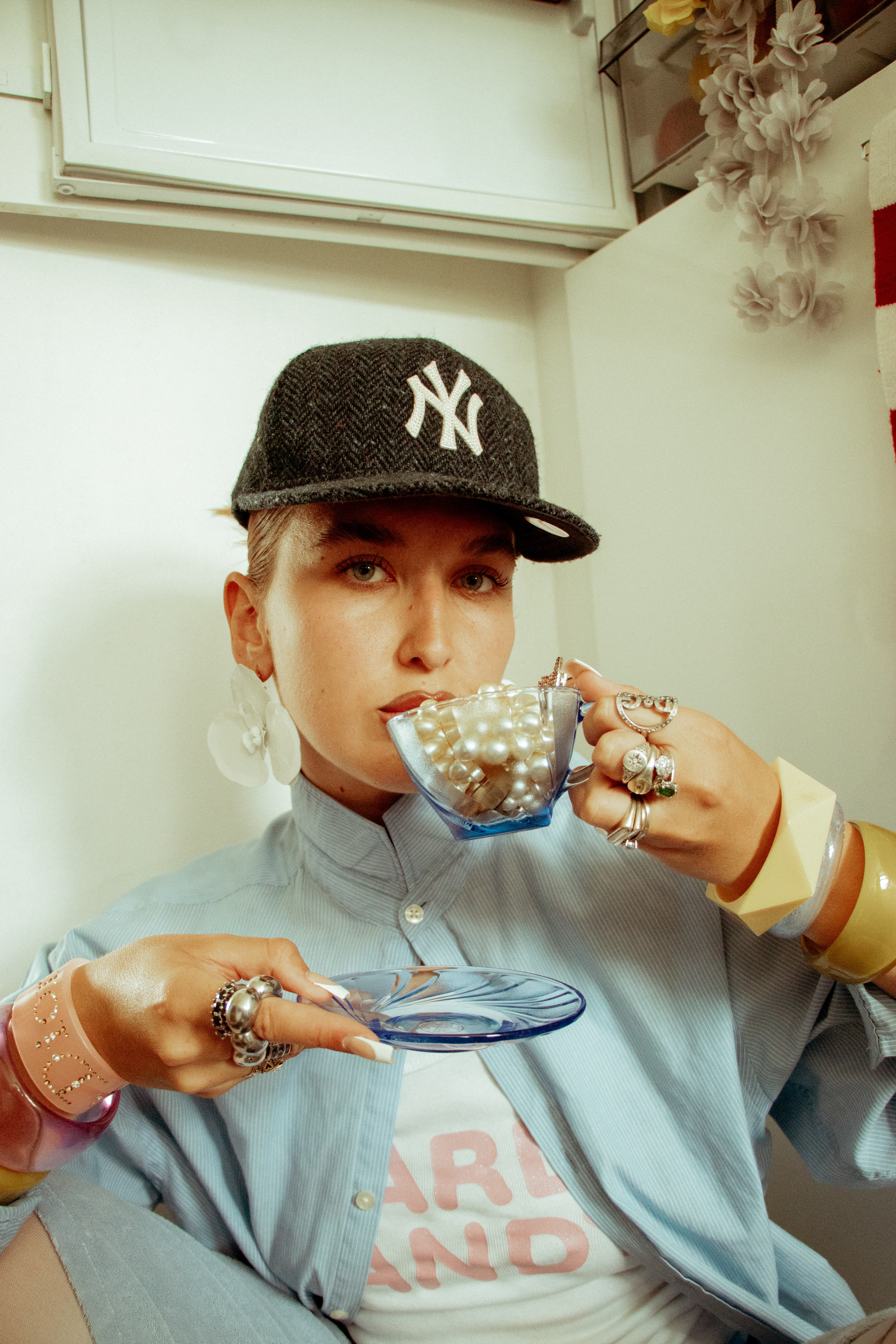 This lesson has certainly carried through – Abi Masters knows exactly who she is: “The minute I become predictable, it’s over.” She carries herself with surety in front of the camera and when you see her in action; so comfortable in her own skin, you can’t help but want to be too. It was surprising, then, to hear that she works through some pretty gnarly imposter syndrome. When asked how she overcomes this in the interests of her work, she points out that: “You kind of realise how insignificant you are, but that’s not necessarily a negative thing because it’s so freeing. You’re like, genuinely no one gives a shit, like, you do you!” This premise is also one of the reasons that London has become Abi’s creative hub; the anonymity of the city offering a liberating freedom to pursue individuality and creative expression. “Everyone here is sick, everyone here’s got their own style” she tells us, confessing that she loves nothing more than sitting in a coffee-shop and people-watching. Abi draws creative inspiration for her work from her surroundings in everyday life: